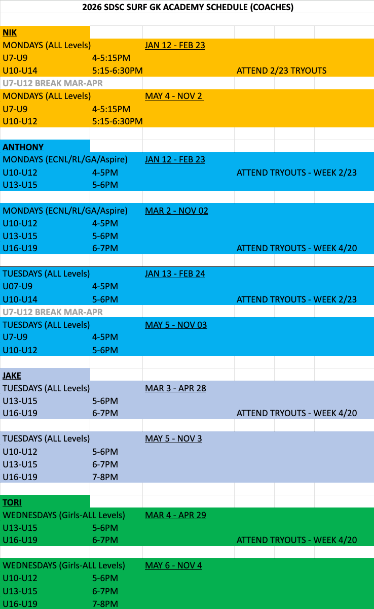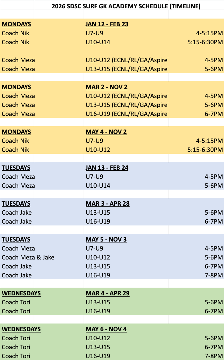 Contact: Goalkeeping Director Anthony Meza, 858-776-0403 or a.meza@sdscsurf.com